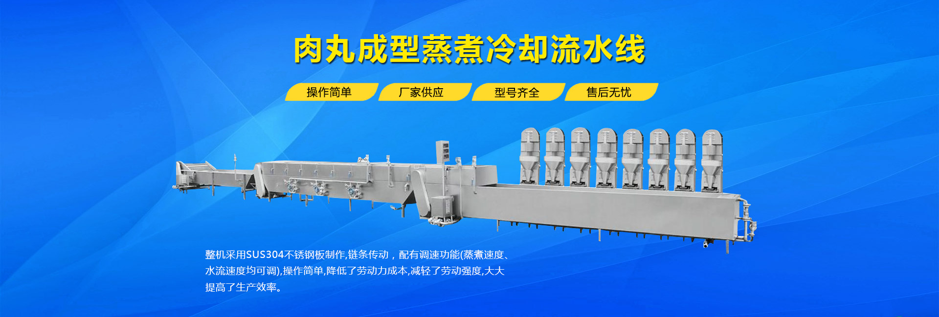 公司主要生產不銹鋼制品食品機械:各種規格型號真空滾揉機、制冷滾揉機、提升機、電加熱夾層鍋、肉丸機、真空攪拌機、絞肉機、灌腸機、打卡機、線扎機、斬拌機、鹽水注射機、煙熏爐、油炸機、巴氏殺菌線、連續油炸線、肉丸成型水煮線、醬鹵生產線、肉丸破碎機、真空包裝機、洗袋風干機、豬頭劈半機、不銹鋼火腿模具、肉斗車、案桌、煙熏車、屠宰類機械設備、清洗風干設備、肉類解凍設備、滾筒拌料機等。產品廣泛適用于火腿腸、肉丸、肉串、鹵制品、海產品、禽類深加工、油炸、泡椒風味、速凍水餃、魚豆腐、千葉豆腐、豆腐干、牛肉干、牛排雞排類、禽蛋、麻辣、休閑、水果蔬菜清洗、中央廚房、餐飲連鎖、寵物食品等食品生產。